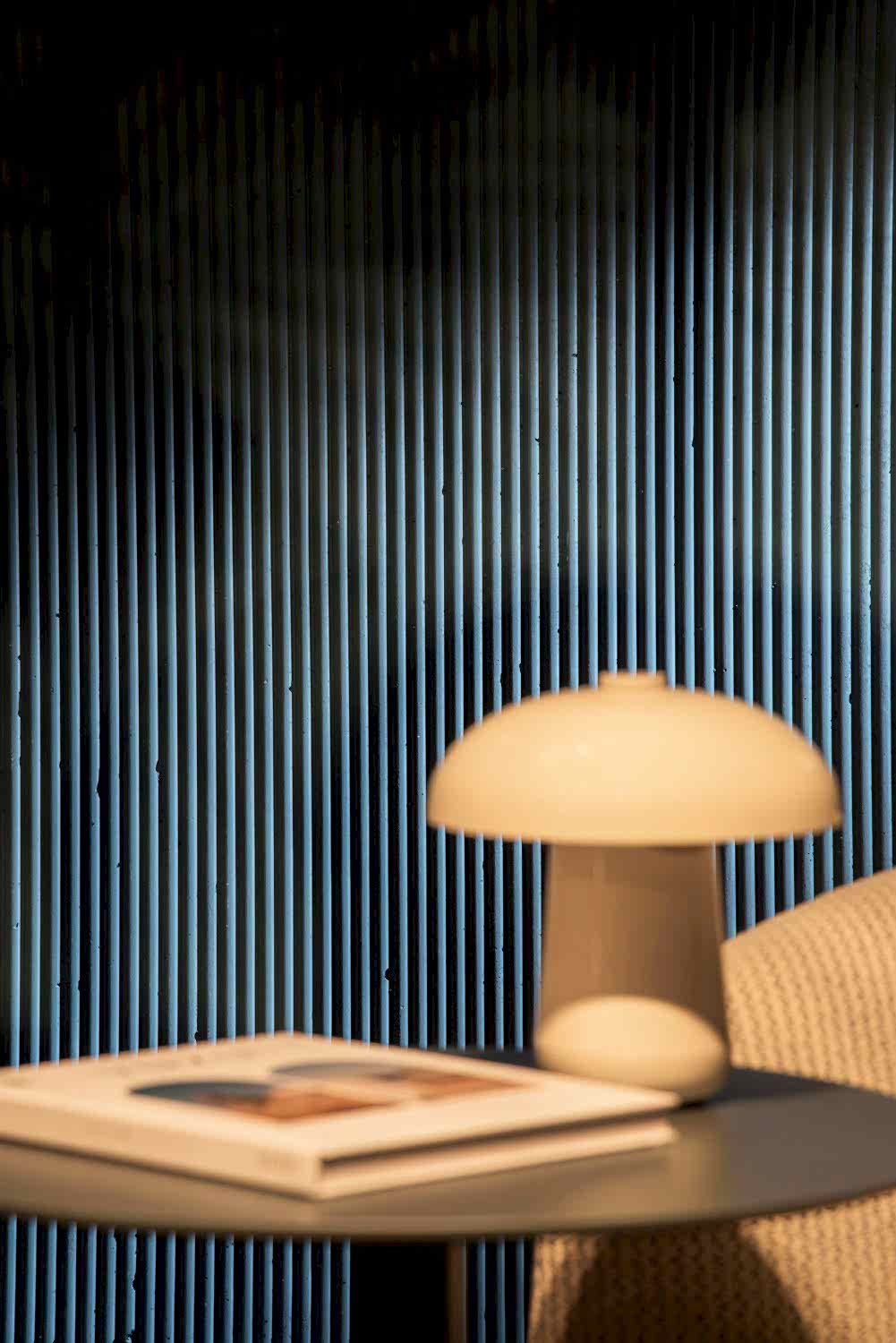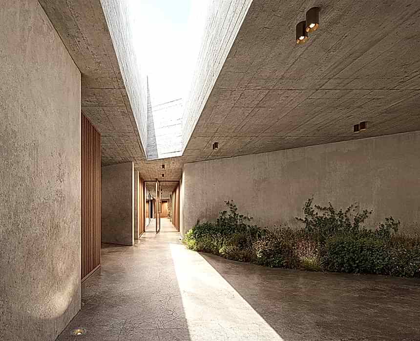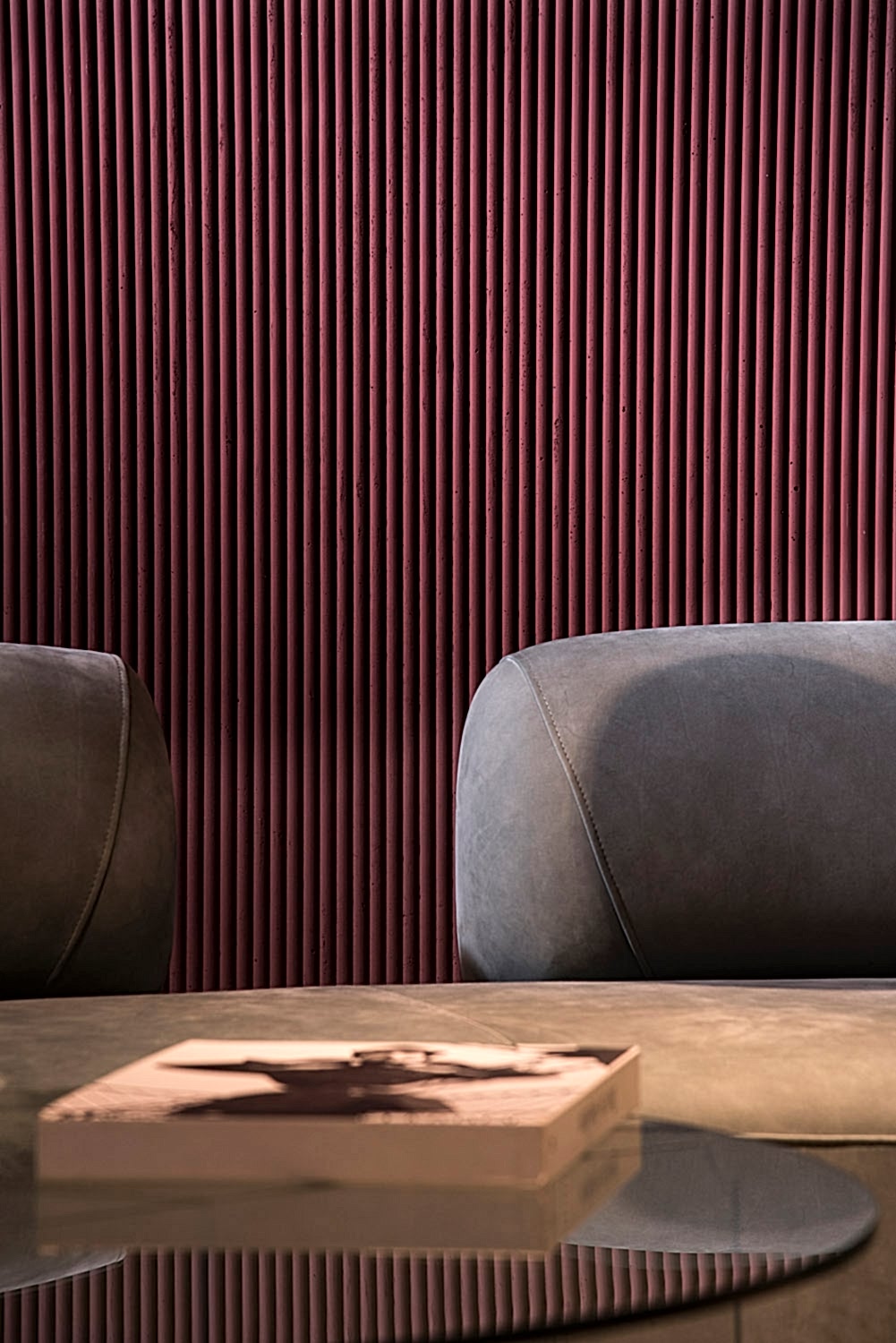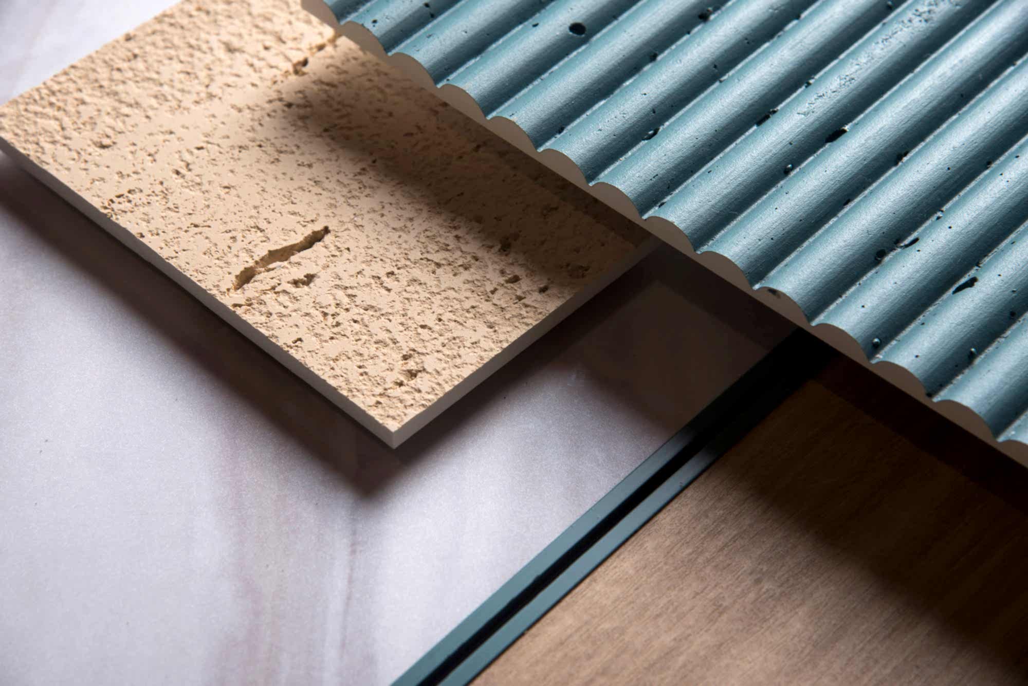 Epilogue wall panel is a surface collection that blends the elegance of modern architecture with the tactile character of stone, masterfully bringing together light and shadow on walls. This special series creates a dramatic atmosphere in architectural spaces while highlighting the power of simplicity. The surface form, emphasized by deep grooves, interacts with daylight to add a visual depth that changes throughout different hours of the day. As the color transitions extend from Clay to Teal, walls transform from being merely a backdrop into a living surface that shapes the emotional tone of the space.