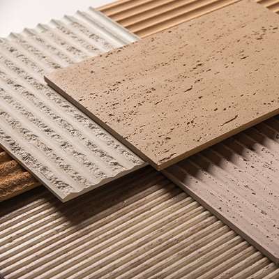 This collection, with its distinctive presence among wall cladding panels, revitalizes the aesthetic of stone-look wall panels through a contemporary interpretation. Its surface, which conveys the texture of nature in every detail, brings warmth and character to spaces. The lines reminiscent of the travertine-look wall panel concept add a refined dynamism to the texture of the space.