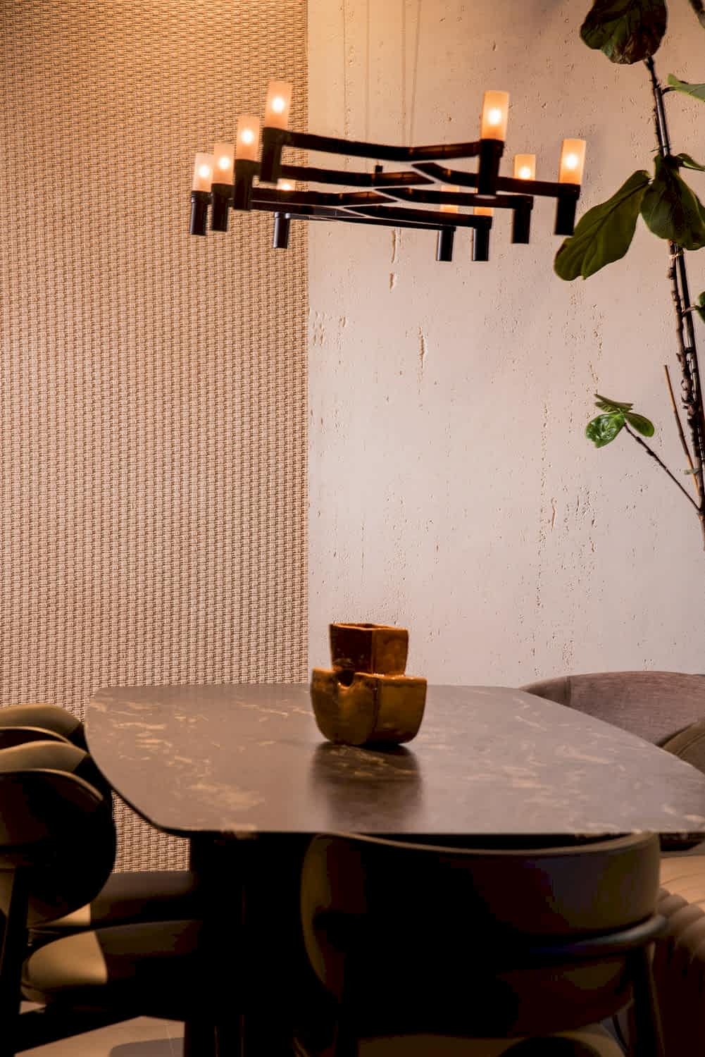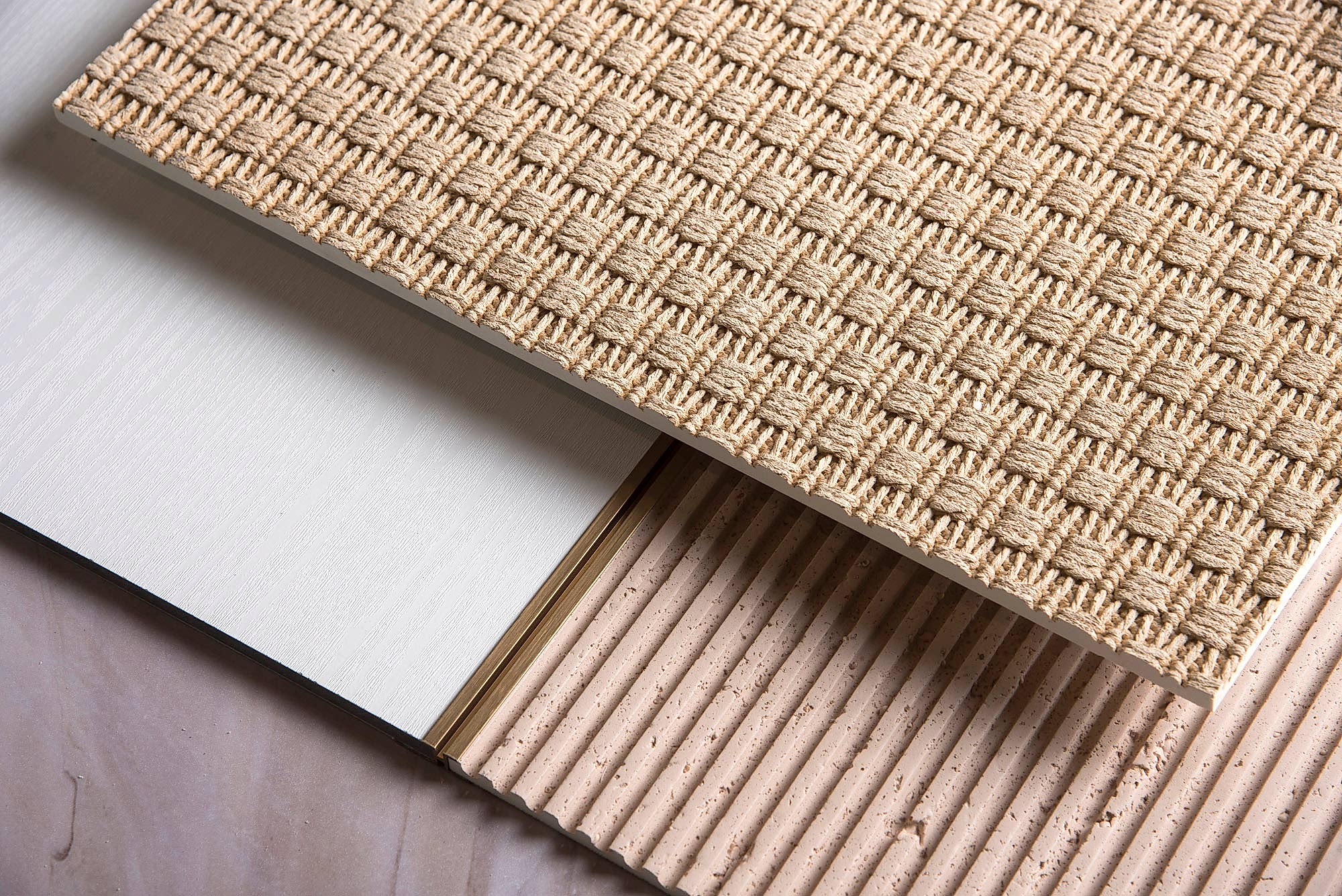 Each Knitt panel unites the elegance of natural stone with the tactile quality of fabric. In this respect, it redefines the concept of stone-look wall panels. On its surface, which evokes the aesthetic of travertine-look wall panels, the warmth of naturalness merges with a contemporary order. The woven-patterned texture creates the effect of 3D wall panels; the surface form interacting with light adds architectural rhythm to walls.